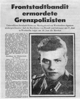 Der Westen log Das >>Neue Deutschland<< vom 20. Juni 1962 machte Reinhold Huhn zu einem Helden. Die Zeitung beschrieb die Tat und nannte den Täter beim Namen, legte Beweise vor, doch der Westen blieb bei seiner von Polizei und Geheimdiensten verbreiteten Version. Erst mit den Unterlagen des MfS konnte Rudolf M. rechtskräftig verurteilt werden Faksimile: ND Fernsehdokumentation. Mord an einem DDR-Grenzer Der Westen log Von Peter Kirschey Neue Deutschland, 7.7.2000 Es war alles perfekt eingefädelt, und es hätte an diesem 18. Juni 1962 eine große Medienschau mit Sekt und Kaviar im Hause des Medienzars Axel Cäsar Springer geben können. Ein Tunnelheld, der seine geknechteten Landsleute und Familienangehörigen in höchster Not aus den Klauen des Unrechtsregimes befreit und durch einen selbstgegrabenen Gang vom Springer-Gelände in die Freiheit schleust. Doch Rudolf M., der Fluchthelfer, hatte damals die Nerven verloren. Als sich der ahnungslose Grenzposten Reinhold Huhn der Gruppe auf Ostberliner Seite näherte, um die Ausweise zu kontrollieren, wie es zu jener Zeit üblich war, zog M. eine Pistole und streckte den 20 Jahre jungen Soldaten mit zwei gezielten Schüssen nieder. Reinhold Huhn verblutete innerhalb weniger Sekunden. Der frontstädtische Propagandaakt war gründlich vermasselt, der Mordschütze eilig vom amerikanischen Geheimdienst einkassiert und aus Westberlin ausgeflogen worden. 38 Jahre danach widmet sich eine filmische Dokumentation den Ereignissen an der Grenze zwischen den Berliner Bezirken Mitte und Kreuzberg ein Jahr nach dem Mauerbau. Der Streifen >>Tödliche Schüsse<< dürfte vielen Westberlinern nicht schmecken. Erfahren sie doch erstmals eine Version vom Geschehen, die im Westen über Jahrzehnte totgeschwiegen wurde. Unmittelbar nach den tödlichen Schüssen auf Reinhold Huhn wurde von der Politischen Polizei in Westberlin, die auch die Mordwaffe verschwinden ließ, und dem amerikanischen Geheimdienst eine offizielle Darstellung verbreitet, der sich dann Westberliner Politiker und Medien willig anschlossen: Danach geriet der Grenzer in das MP-Feuer seiner eigenen Kameraden. Satte Häme machte sich breit, selber schuld, wenn so einer von den eigenen Leuten umgebracht wird. Doch inzwischen kam die Wahrheit längst ans Tageslicht. Rudolf M., der Pistolenschütze, wurde vor einem Jahr vom Berliner Landgericht als Totschläger zu einer Gefängnisstrafe auf Bewährung verurteilt, weil er ohne Not einen jungen Menschen tötete. Der Bundesgerichtshof verschärfter das Urteil am vergangenen Mittwoch in der Revisionsverhandlung und wertete die Tat als Mord, bestätigte aber das Strafmaß. In bemerkenswerter Offenheit haben die Schöpfer der Dokumentation, Rea Karen und Gernot Steinweg aus Köln, ohne sonst gängige zeitgeistige ideologische Scheuklappen ein Filmwerk geschaffen, das den Kalten Krieg als ein geschichtliches Ereignis darstellt, in dem sich beide Seiten nichts schenkten. In Interviews und Zeitdokumenten zeichneten sie den mehrmonatigen Prozeß gegen den inzwischen ergrauten Todesschützen nach, belegen, wie die westliche Seite ein Lügennetz zusammenflocht, um der Bluttat öffentliche Akzeptanz zu verleihen. Die Filmemacher lassen Journalisten zu Wort kommen, die den Prozess verfolgt haben, einen pensionierten Westberliner Polizeipräsidenten und den damaligen Pressechef des Senats Egon Bahr. Auf beiden Seiten der deutsch-deutschen Front tobte eine gnadenlose Propagandaschlacht. Die Filmemacher beleuchteten, wie die Medien auf beiden Seiten auf die Bluttat reagierten. Nicht nur im Osten gab es die Einheitlichkeit der Argumentation, auch der westliche Blätterwald funktionierte nur gleichgeschaltet. Nichts von überparteilicher und unabhängiger freiheitlich-demokratischer Berichterstattung. Es ist kein geringerer als Egon Bahr, der sich zur späten Erkenntnis durchringt, damals als Regierungsvertreter Falschmeldungen verbreitet zu haben. Der rechtskräftig verurteilte Mörder allerdings, mit dem Bundesverdienstkreuz hoch dekoriert und im Film befragt, ließ bis heute nicht erkennen, dass ihm der Tod eines 20-jährigen naheging. Bis heute fehlt ein Wort des Bedauerns an die Brüder von Reinhold Huhn. Er hält sich weiterhin für unschuldig. Ursprünglich war ein 30-minütiger Film für das Schulfernsehen geplant, der SFB hat daraus einen 45-minütigen Steifen gemacht – wohl als eine späte Erkenntnis, dass auch im Osten Berlins Geschichte erlebt wurde, die nicht unbedingt der westlichen Sichtweise entsprach. Der Film >>Tödliche Schüsse<< läuft am 9. Juli um 22 Uhr in B1 sowie am 31.8. und am 7.9. jeweils um 7.30 Uhr im WDR-Schulfernsehen. BERLIN | CONFLICTS | CONTROVERSY | SOCIETY | GERMAN-REUNIFICATION | WAR & PEACE by Rea Karen & Gernot Steinweg